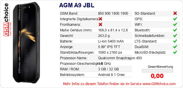 Daten des Mobiltelefons AGM A9 JBL auf Ihrer Seite