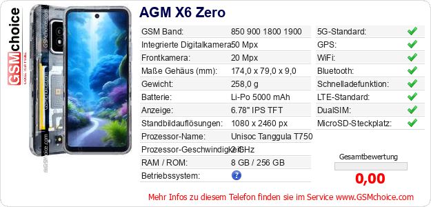 Daten des Mobiltelefons AGM X6 Zero auf Ihrer Seite