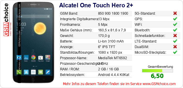 Hast du eigene Webseite? Willst du die Informationen über Standarddaten des Handys Alcatel One Touch Hero 2+ irgendwo veröffentlichen? Das ist sehr einfach. Du kannst das Bild herunterladen oder kopieren und auf der Webseite folgenden Code hinzufügen:Das Einfügen von diesem Code verursacht das Anzeigen von dem folgenden Bild: