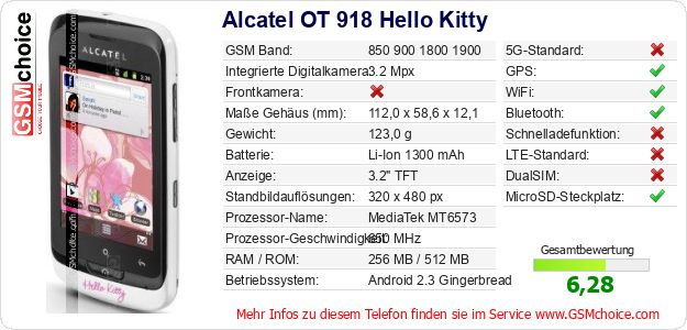 Daten des Mobiltelefons Alcatel OT 918 Hello Kitty auf Ihrer Seite