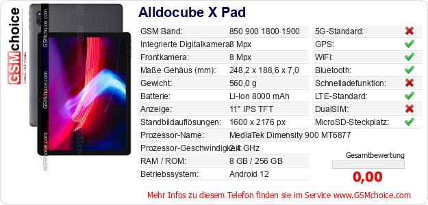 Daten des Mobiltelefons Alldocube X Pad auf Ihrer Seite