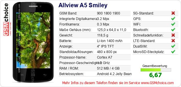 Daten des Mobiltelefons Allview A5 Smiley auf Ihrer Seite