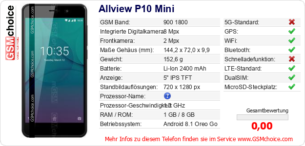 Daten des Mobiltelefons Allview P10 Mini auf Ihrer Seite