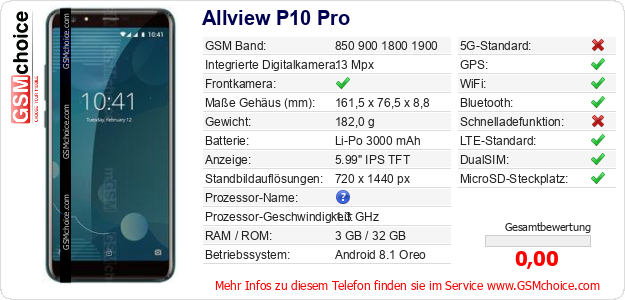 Daten des Mobiltelefons Allview P10 Pro auf Ihrer Seite