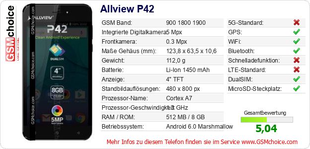 Hast du eigene Webseite? Willst du die Informationen über Standarddaten des Handys Allview P42 irgendwo veröffentlichen? Das ist sehr einfach. Du kannst das Bild herunterladen oder kopieren und auf der Webseite folgenden Code hinzufügen:Das Einfügen von diesem Code verursacht das Anzeigen von dem folgenden Bild: