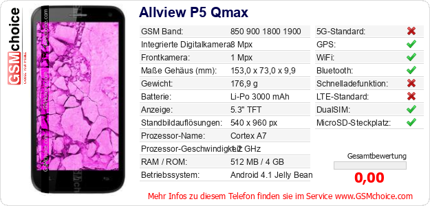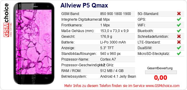 Daten des Mobiltelefons Allview P5 Qmax auf Ihrer Seite