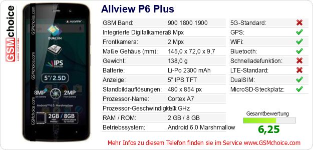 Daten des Mobiltelefons Allview P6 Plus auf Ihrer Seite