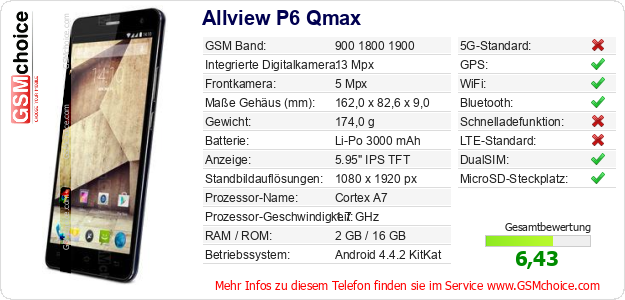Daten des Mobiltelefons Allview P6 Qmax auf Ihrer Seite