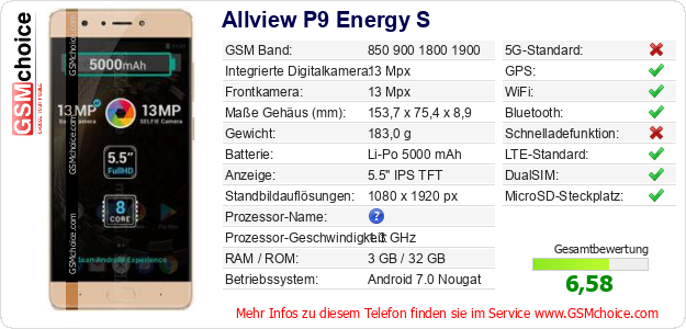 Daten des Mobiltelefons Allview P9 Energy S auf Ihrer Seite