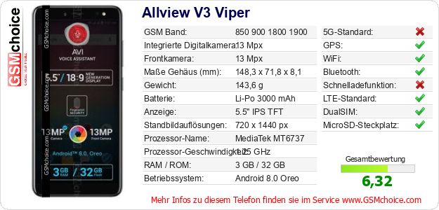 Hast du eigene Webseite? Willst du die Informationen über Standarddaten des Handys Allview V3 Viper irgendwo veröffentlichen? Das ist sehr einfach. Du kannst das Bild herunterladen oder kopieren und auf der Webseite folgenden Code hinzufügen:Das Einfügen von diesem Code verursacht das Anzeigen von dem folgenden Bild: