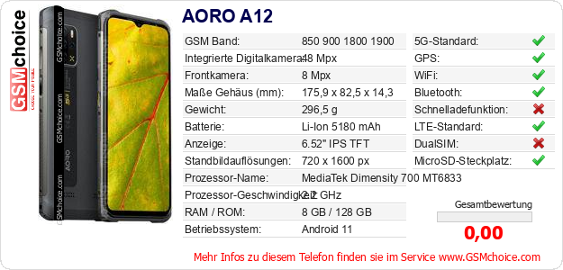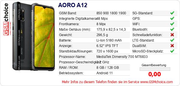 Hast du eigene Webseite? Willst du die Informationen über Standarddaten des Handys AORO A12 irgendwo veröffentlichen? Das ist sehr einfach. Du kannst das Bild herunterladen oder kopieren und auf der Webseite folgenden Code hinzufügen:Das Einfügen von diesem Code verursacht das Anzeigen von dem folgenden Bild: