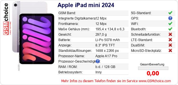 Daten des Mobiltelefons Apple iPad mini 2024 auf Ihrer Seite