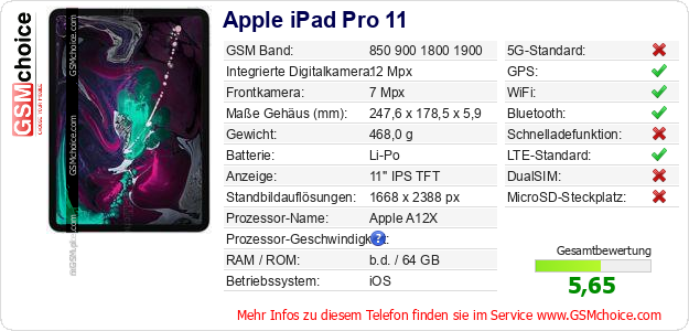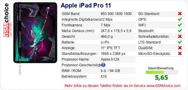Daten des Mobiltelefons Apple iPad Pro 11 auf Ihrer Seite