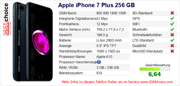 Daten des Mobiltelefons Apple iPhone 7 Plus 256 GB auf Ihrer Seite