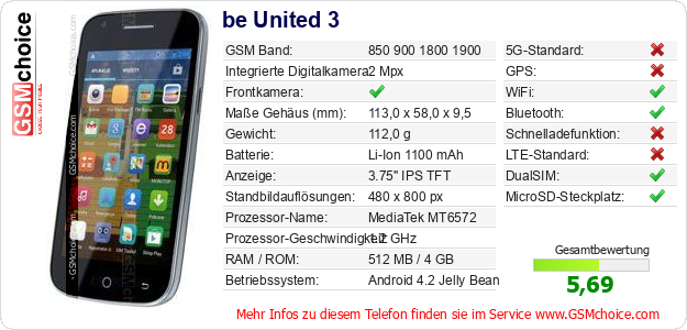 Hast du eigene Webseite? Willst du die Informationen über Standarddaten des Handys be United 3 irgendwo veröffentlichen? Das ist sehr einfach. Du kannst das Bild herunterladen oder kopieren und auf der Webseite folgenden Code hinzufügen:Das Einfügen von diesem Code verursacht das Anzeigen von dem folgenden Bild: