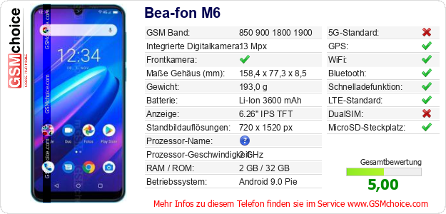 Hast du eigene Webseite? Willst du die Informationen über Standarddaten des Handys Bea-fon M6 irgendwo veröffentlichen? Das ist sehr einfach. Du kannst das Bild herunterladen oder kopieren und auf der Webseite folgenden Code hinzufügen:Das Einfügen von diesem Code verursacht das Anzeigen von dem folgenden Bild: