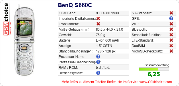 Daten des Mobiltelefons BenQ S660C auf Ihrer Seite