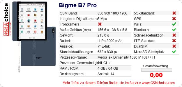 Daten des Mobiltelefons Bigme B7 Pro auf Ihrer Seite