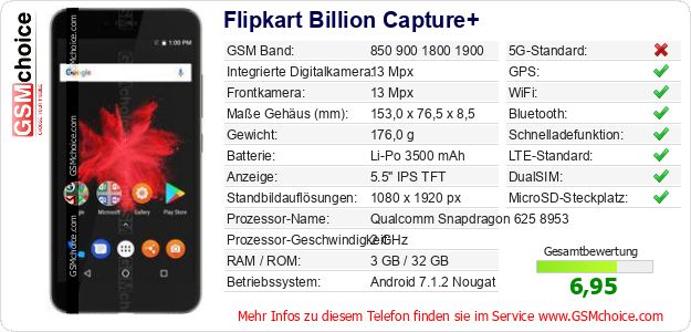 Hast du eigene Webseite? Willst du die Informationen über Standarddaten des Handys Flipkart Billion Capture+ irgendwo veröffentlichen? Das ist sehr einfach. Du kannst das Bild herunterladen oder kopieren und auf der Webseite folgenden Code hinzufügen:Das Einfügen von diesem Code verursacht das Anzeigen von dem folgenden Bild: