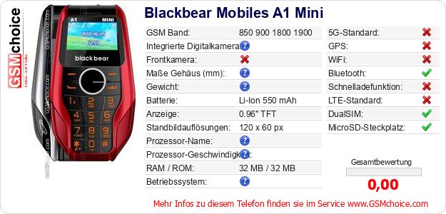 Daten des Mobiltelefons Blackbear Mobiles A1 Mini auf Ihrer Seite