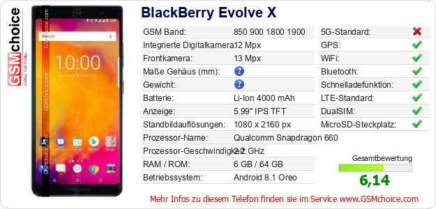 Hast du eigene Webseite? Willst du die Informationen über Standarddaten des Handys BlackBerry Evolve X irgendwo veröffentlichen? Das ist sehr einfach. Du kannst das Bild herunterladen oder kopieren und auf der Webseite folgenden Code hinzufügen:Das Einfügen von diesem Code verursacht das Anzeigen von dem folgenden Bild: