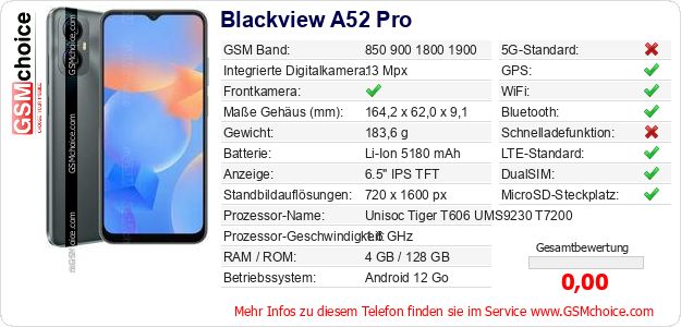Daten des Mobiltelefons Blackview A52 Pro auf Ihrer Seite