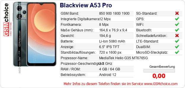 Daten des Mobiltelefons Blackview A53 Pro auf Ihrer Seite