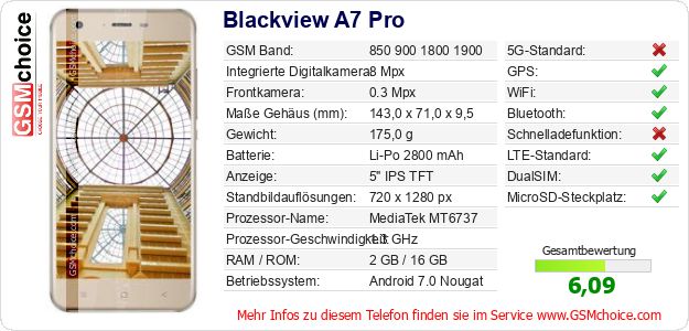 Daten des Mobiltelefons Blackview A7 Pro auf Ihrer Seite