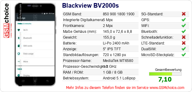 Hast du eigene Webseite? Willst du die Informationen über Standarddaten des Handys Blackview BV2000s irgendwo veröffentlichen? Das ist sehr einfach. Du kannst das Bild herunterladen oder kopieren und auf der Webseite folgenden Code hinzufügen:Das Einfügen von diesem Code verursacht das Anzeigen von dem folgenden Bild: