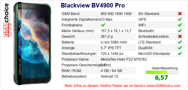 Hast du eigene Webseite? Willst du die Informationen über Standarddaten des Handys Blackview BV4900 Pro irgendwo veröffentlichen? Das ist sehr einfach. Du kannst das Bild herunterladen oder kopieren und auf der Webseite folgenden Code hinzufügen:Das Einfügen von diesem Code verursacht das Anzeigen von dem folgenden Bild: