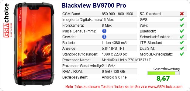 Daten des Mobiltelefons Blackview BV9700 Pro auf Ihrer Seite