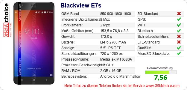 Daten des Mobiltelefons Blackview E7s auf Ihrer Seite