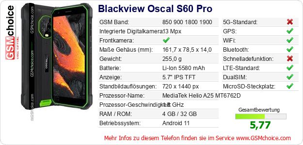 Daten des Mobiltelefons Blackview Oscal S60 Pro auf Ihrer Seite