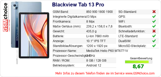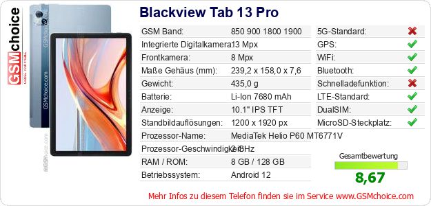 Daten des Mobiltelefons Blackview Tab 13 Pro auf Ihrer Seite