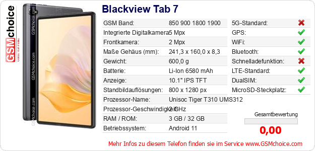 Daten des Mobiltelefons Blackview Tab 7 auf Ihrer Seite