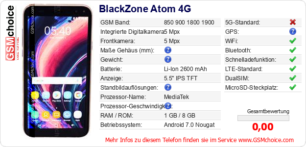 Daten des Mobiltelefons BlackZone Atom 4G auf Ihrer Seite
