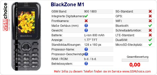 Hast du eigene Webseite? Willst du die Informationen über Standarddaten des Handys BlackZone M1 irgendwo veröffentlichen? Das ist sehr einfach. Du kannst das Bild herunterladen oder kopieren und auf der Webseite folgenden Code hinzufügen:Das Einfügen von diesem Code verursacht das Anzeigen von dem folgenden Bild: