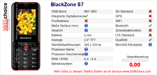 Hast du eigene Webseite? Willst du die Informationen über Standarddaten des Handys BlackZone S7 irgendwo veröffentlichen? Das ist sehr einfach. Du kannst das Bild herunterladen oder kopieren und auf der Webseite folgenden Code hinzufügen:Das Einfügen von diesem Code verursacht das Anzeigen von dem folgenden Bild: