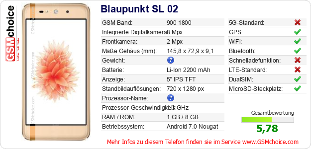 Daten des Mobiltelefons Blaupunkt SL 02 auf Ihrer Seite