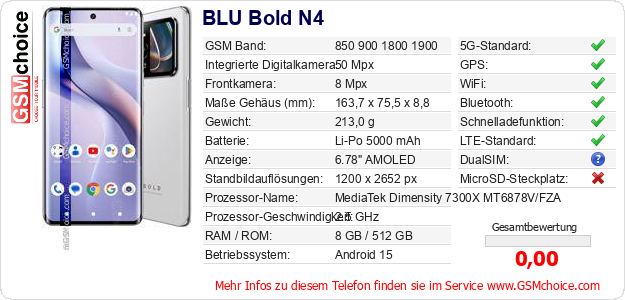 Hast du eigene Webseite? Willst du die Informationen über Standarddaten des Handys BLU Bold N4 irgendwo veröffentlichen? Das ist sehr einfach. Du kannst das Bild herunterladen oder kopieren und auf der Webseite folgenden Code hinzufügen:Das Einfügen von diesem Code verursacht das Anzeigen von dem folgenden Bild: