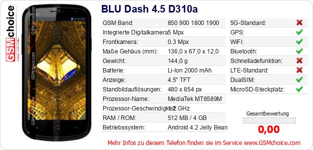 Daten des Mobiltelefons BLU Dash 4.5 D310a auf Ihrer Seite