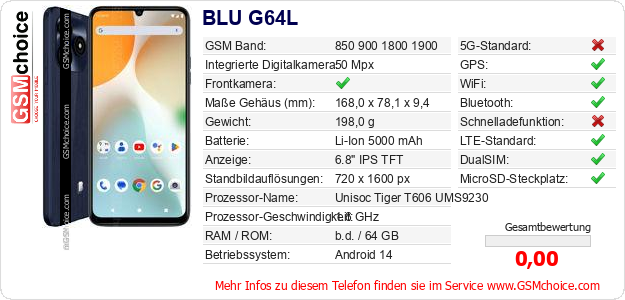 Daten des Mobiltelefons BLU G64L auf Ihrer Seite