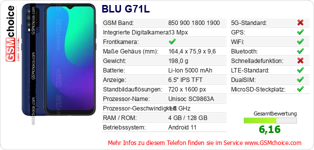 Daten des Mobiltelefons BLU G71L auf Ihrer Seite