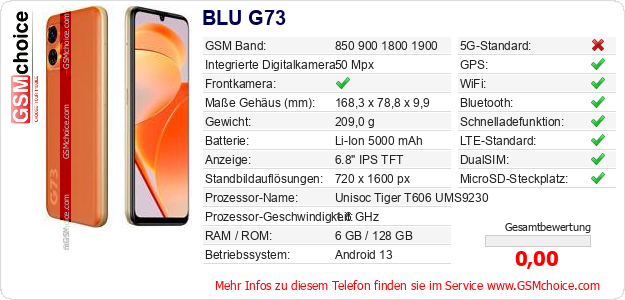 Daten des Mobiltelefons BLU G73 auf Ihrer Seite