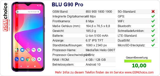 Daten des Mobiltelefons BLU G90 Pro auf Ihrer Seite