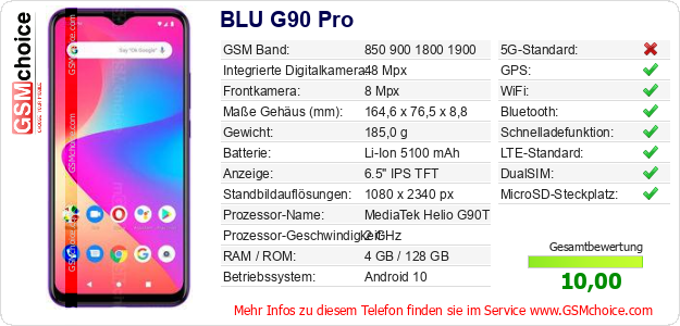 Hast du eigene Webseite? Willst du die Informationen über Standarddaten des Handys BLU G90 Pro irgendwo veröffentlichen? Das ist sehr einfach. Du kannst das Bild herunterladen oder kopieren und auf der Webseite folgenden Code hinzufügen:Das Einfügen von diesem Code verursacht das Anzeigen von dem folgenden Bild: