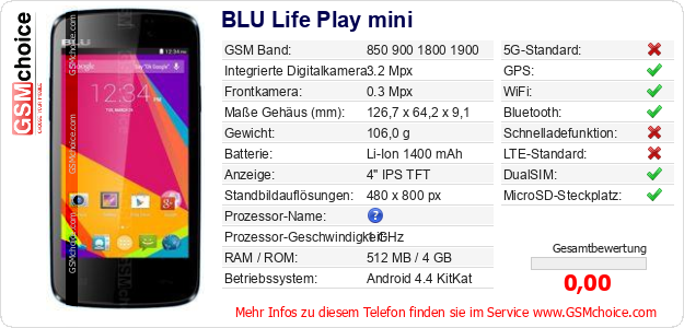 Daten des Mobiltelefons BLU Life Play mini auf Ihrer Seite