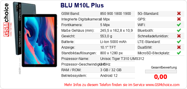 Daten des Mobiltelefons BLU M10L Plus auf Ihrer Seite