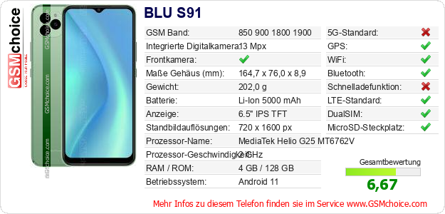 Hast du eigene Webseite? Willst du die Informationen über Standarddaten des Handys BLU S91 irgendwo veröffentlichen? Das ist sehr einfach. Du kannst das Bild herunterladen oder kopieren und auf der Webseite folgenden Code hinzufügen:Das Einfügen von diesem Code verursacht das Anzeigen von dem folgenden Bild: