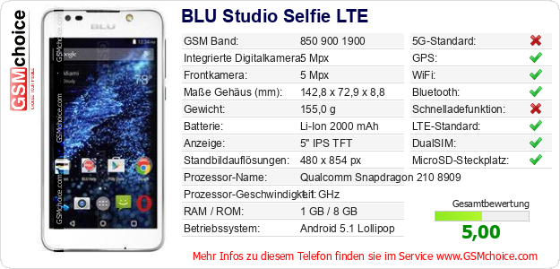 Daten des Mobiltelefons BLU Studio Selfie LTE auf Ihrer Seite